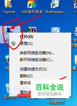 右击桌面上的“计算机”快捷键,从下拉菜单中选中“属性”;
