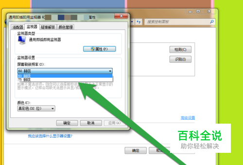 在监视器的界面,点击监视器的设置,查看屏幕支持的刷新频率,设置显示器的频率需要安装,系统给出的频率设置。
