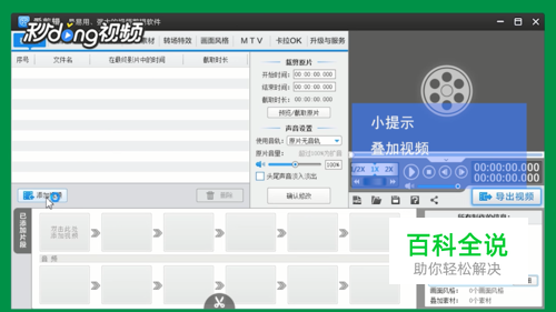 然后点击菜单栏中的“叠加素材”,选择“加贴图”。