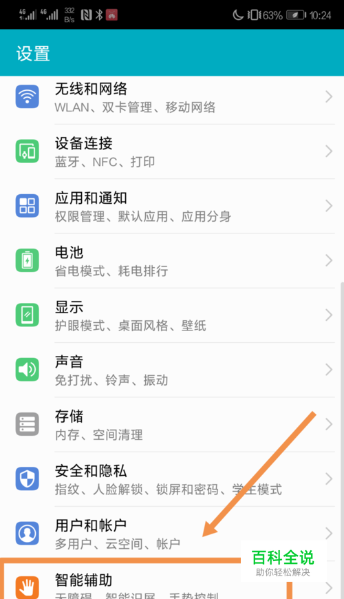 在“设置”中找到下方的“智能辅助”选项,并点击进入该选项。