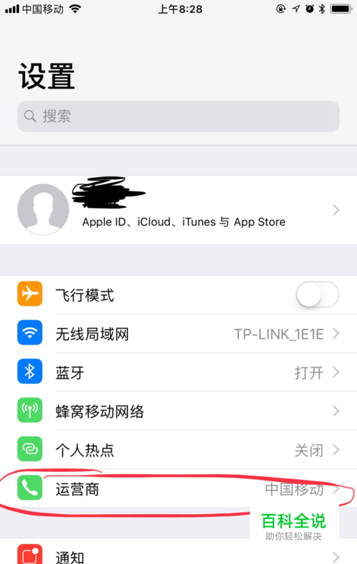 点击手机页面的“设置”——“运营商”——关闭“自动”功能(将右边的按钮调暗)。