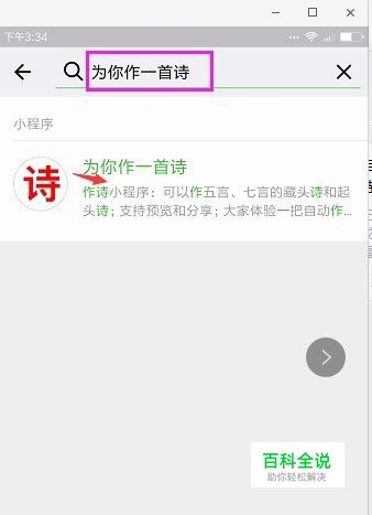 打开微信,在小程序里搜索“为你作一首诗”,然后点击进入。