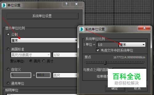 然后将显示单位和系统单位比例都设置成厘米,然后确定