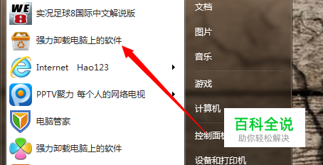 首先点击电脑左下角“开始”,然后在“开始”菜单中找到“强力卸载电脑上的软件”,并且点击打开。