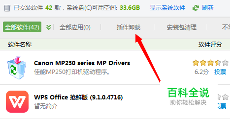 然后进入到软件卸载的界面中,在上方的菜单栏里找到“插件卸载”的名称。然后点击“插件卸载”,就可以对一些不用的插件进行卸载清理了。