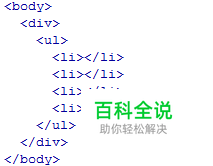 然后我们先进行简单的页面布局。在body部分加入一个div,里面添加ul和li的嵌套。