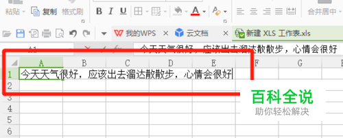 其实现在Excel的版本有很多,操作却几乎雷同,所以下面我们以打开WPS下的Excel数据表为例,在表格中输入一段文字,