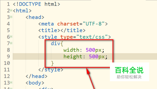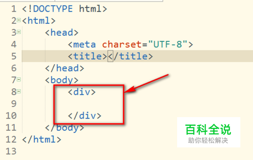 如图,举个例子,在HTML中的body标签里面写上div标签对<div></div>。