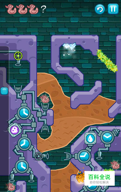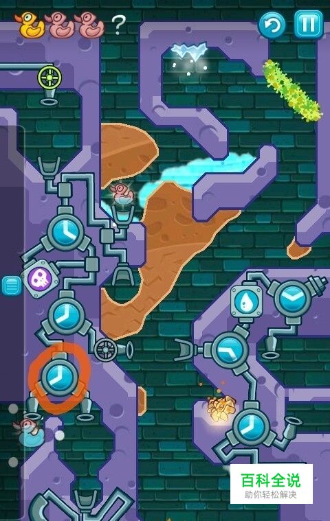 顽皮小鳄鱼爱洗澡乘风破浪第20关“蒸汽满了”的管道绕来绕去,很多玩家对此感到束手无策,我经过几天的不懈怠研究终于想到了如下的三鸭过关方式。