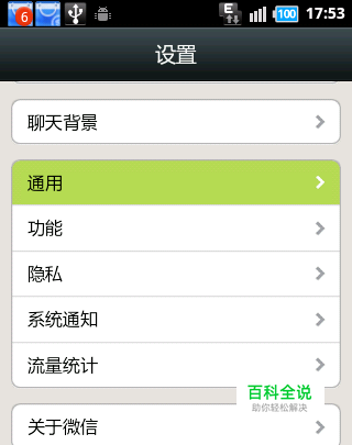 登陆微信手机客户端,切换至“设置”选项卡。然后点击“通用”选项进入。