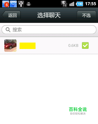 在打开的”选择聊天‘窗口中,勾选要上传的好友,然后点击“确定”按钮。