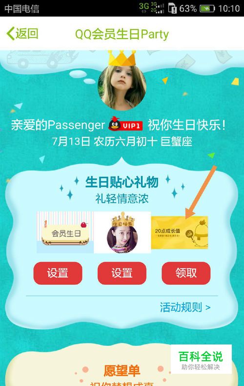 生日祝福:把生日改为日期当天,然后搜索“QQ会员生日party" (用手机打开)就可以领取20点成长值