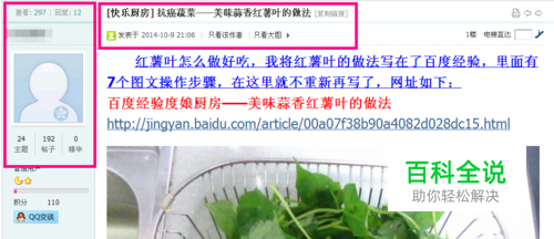 最后来查看一下,所发表帖子的效果吧!看到左上角查看此贴的人数是297人,总会有一些人点击此贴中的经验链接,这样一定程度上会给你的经验带来一些流量。