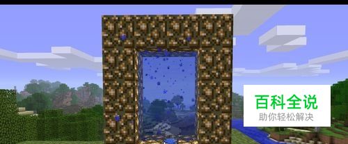 制作完成萤石方框之后,我们使用水桶道具, 向萤石框中放置水,形成一个外部萤石,内部水的小方框,形成天堂之门。