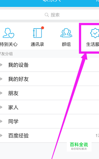 登陆手机QQ点击生活服务