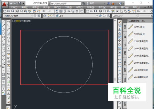 打开cad图纸软件,如图将红色框中的圆删除掉。