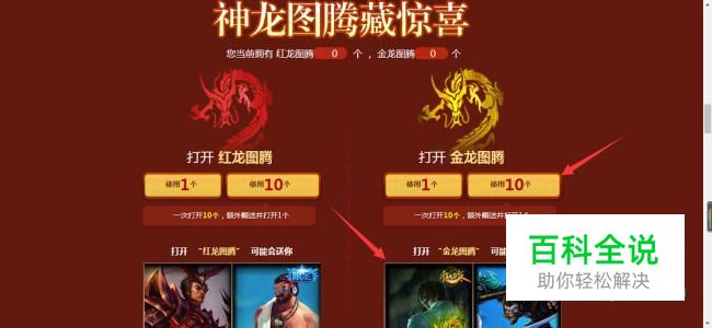 十元人民币开启一次的金龙图腾,十连开获得几率会大大增加;