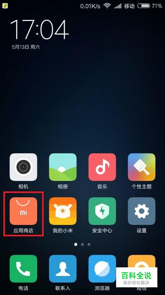 现在以小米手机为例进行演示,找到手机中的“应用商城”。