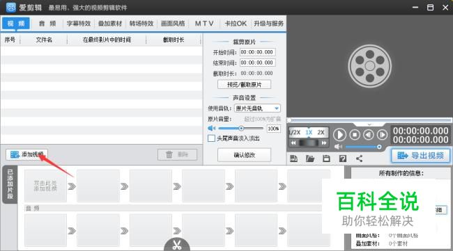 点击添加视频按钮,选择要编辑的视频。