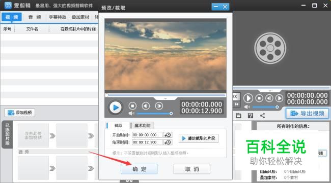 进行预览播放,查看是否是需要编辑的视频,再点击确认。