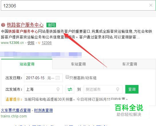 在浏览器栏输入:12306 就会出现订票官网。点击进入官网。