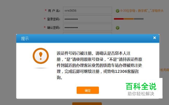 接着会弹出一个提示框,提示身份证已经被注册过了。