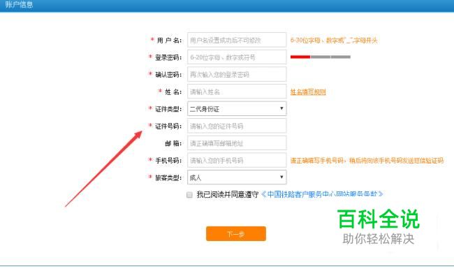 在注册页面根据自己的情况填写注册表格。这是需要实名认证的所以要填写正确。之后点击下一步。