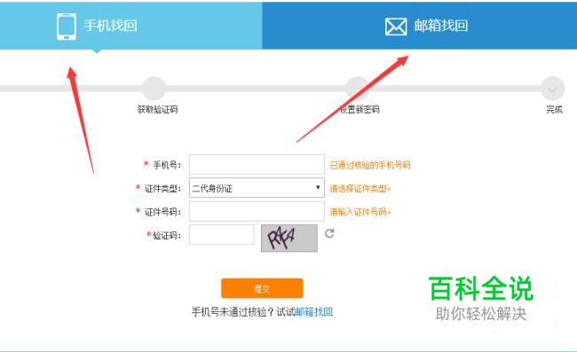 输入自己的手机号、身份证号之后点击下一步。或者选择邮箱找回。