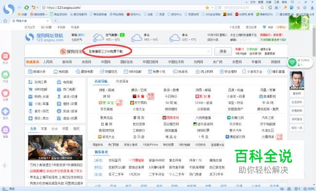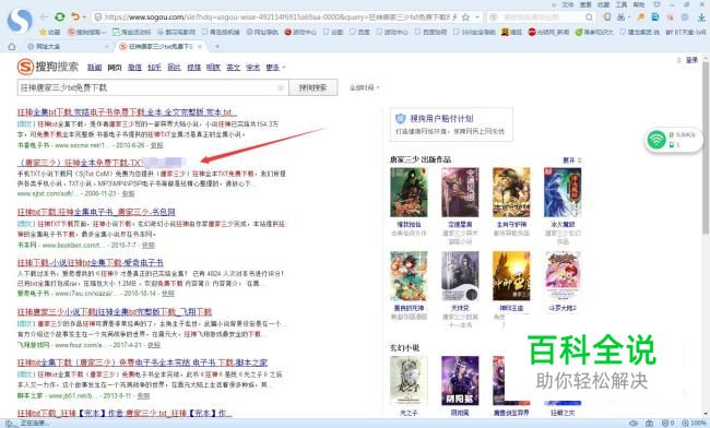 打开搜狗,在搜狗搜索中键入狂神唐家三少txt免费下载字样,然后点击搜索。