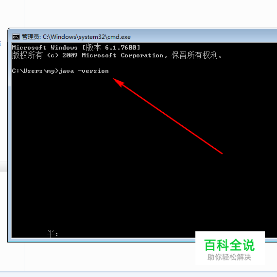 然后在命令模式(就是黑色字版)输入“java -version”,再按enter键。注意中间有个空格哦。