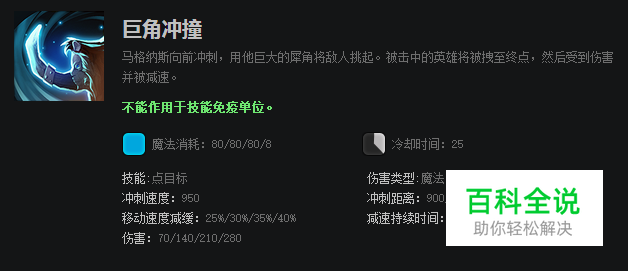 巨角冲撞能让猛犸移动一段距离,并将移动过程中触碰到的英雄单位一起带到指定地点。