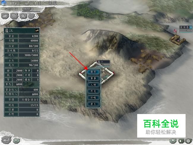 选择一个我们势力内的据点,我们可以看到几个选项,分别是都市,军事,人才,外交,计略,君主等,其中市场属于政治设施,可以在都市里找到相关操作。