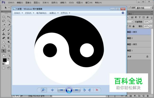 然后,复制椭圆2,把颜色改为白色,移动到如图所示位置,这样一个八卦图就画好了。