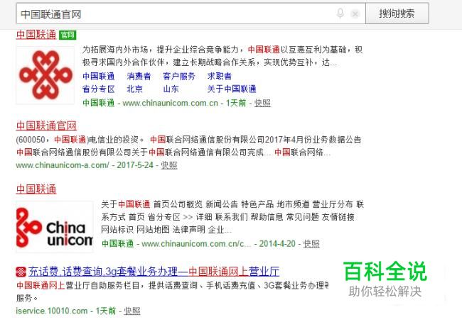 点击带有“中国联通官网”字样的链接。