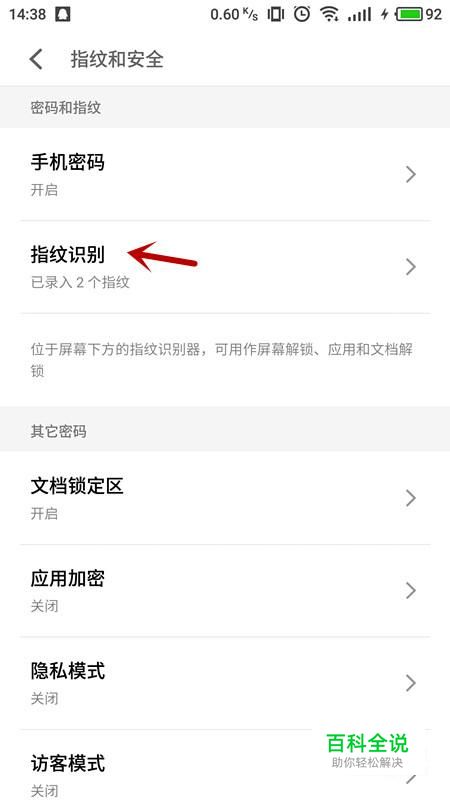 指纹录入成功后,将“使用指纹”右侧滑块开启。