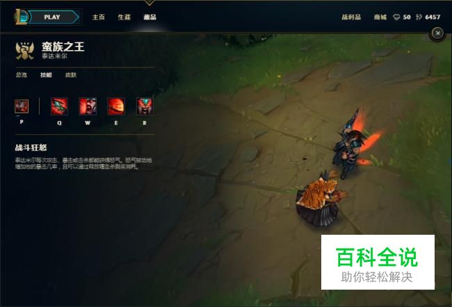 首先来看看蛮王被动技能,我们会根据这个被动技能去选择天赋符文加点;(每点怒气增加0.35%暴击几率,泰达米尔每次攻击获得5怒气,暴击获得10怒气;击杀目标则额外获得10怒气。脱离战斗8秒后每秒损失5怒气)