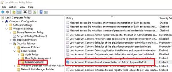 (2)转到 计算机设置 -> Windows 设置 -> 安全设置 -> 本地策略 -> 安全选项;