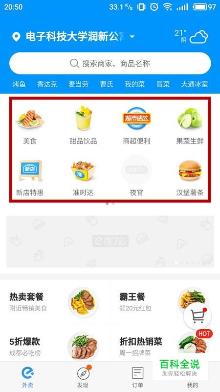 进入首页后,根据需求选择想要叫的外卖类别。