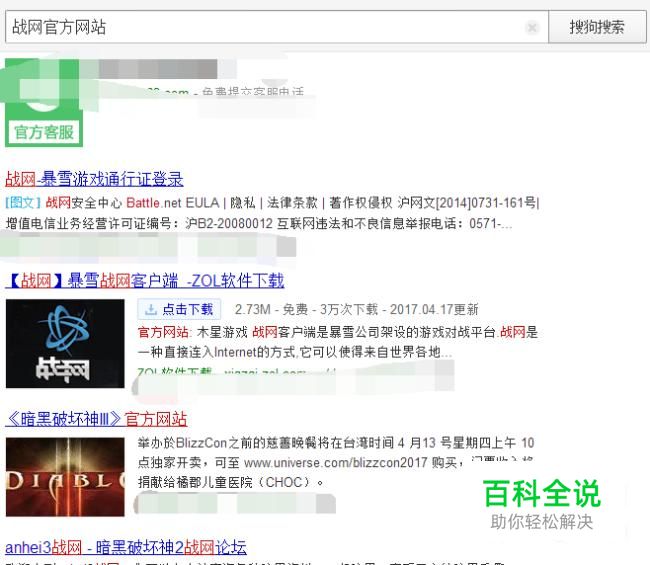 在搜狗浏览器输入:战网官方网站。点击进入网站