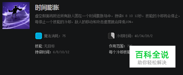 时间膨胀能让敌方单位造成技能cd停止,并降低移动速度和攻击速度。