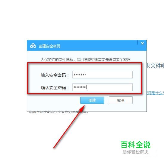 接着输入两次密码之后,点击创建就可以了。注意密码不能是纯数字或者纯字母哦。