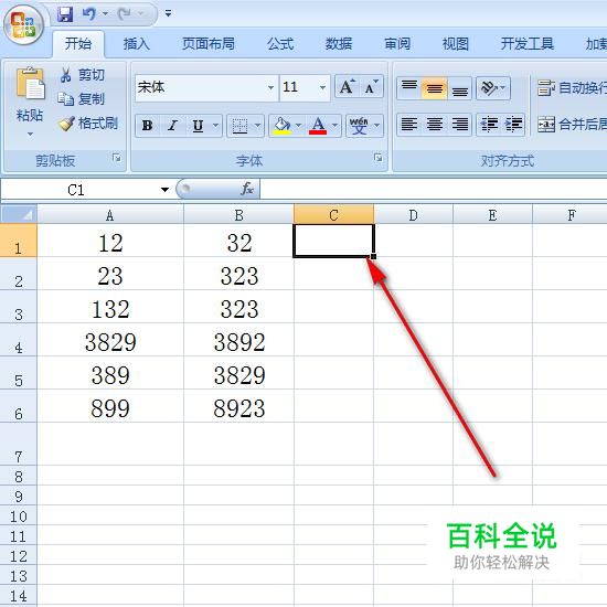 然后我们点一下C1单元格。