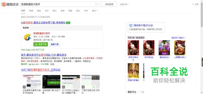 首先,我们需要到搜狗浏览器中下载安装“英雄联盟官方助手”;(直接搜索就有)