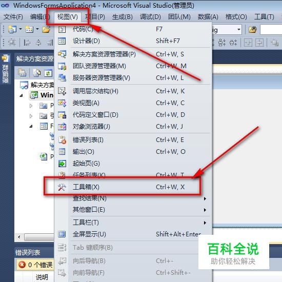 点击菜单栏上的“视图”菜单,然后点击“工具箱”。