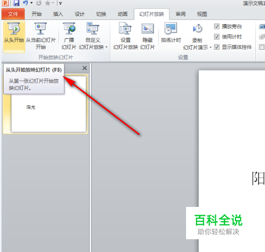 比如快捷键F5可以开始放映PPT,Esc键则可以退出PPT放映。