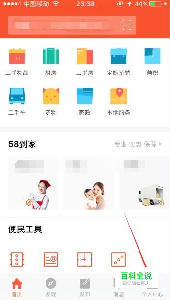 进入手机58同城主页后,点击页面右下角的“个人中心”按键。
