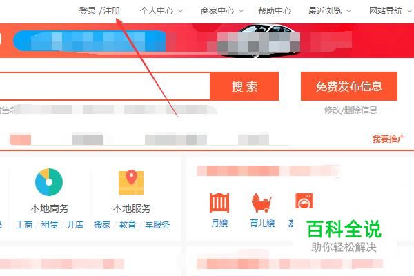 怎么登录58同城的账号呢?还是在主页点击页面上方登录/注册中的“登录”按键。