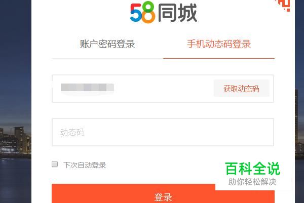 然后在弹出的58同城登录页面用户输入手机号或者用户名或者邮箱,接着输入相关密码进行登录。