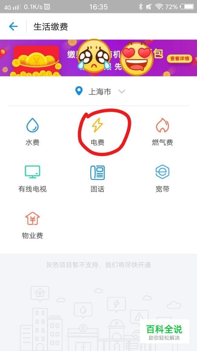 选择需要缴费的选项。比如:电费。点击电费选项进入电费缴纳。