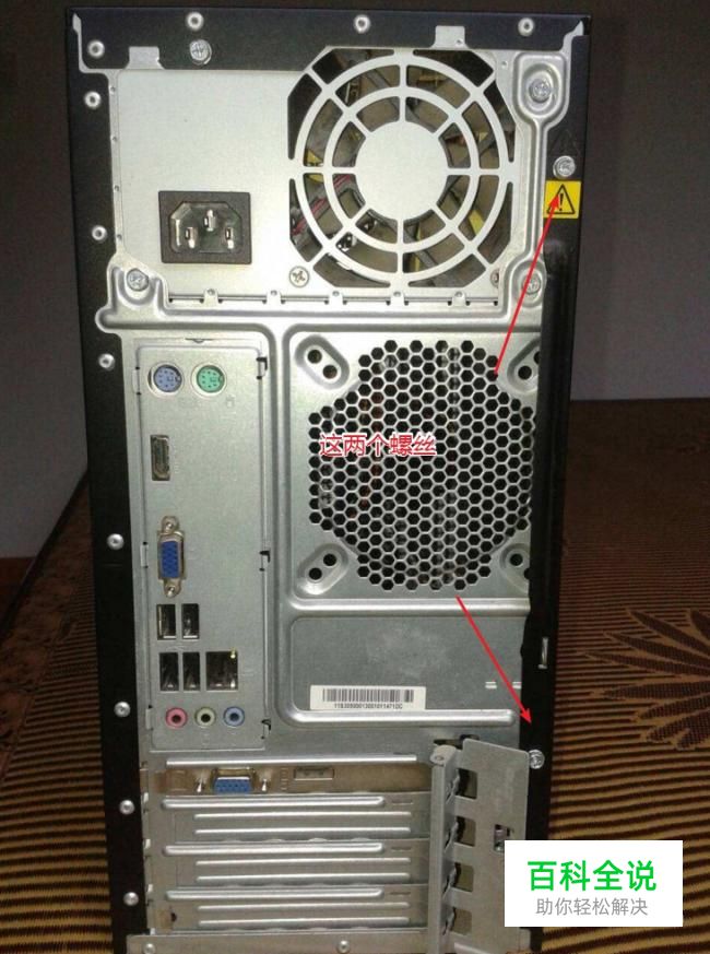 首先打开机箱侧边的盖子,有上下两个螺丝。如图所示: